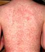 Prickly Heat is a rash of tiny blisters that look like little pink or red spots. It is caused by blocked sweat glands and is extremely itchy. it can affect any part of the body, and the best line of action is to keep as cool as possible, expose the area to air if possible, and only cover with light cotton clothing. Apply a splash to the area, made by diluting 6 drops each of eucalyptus, lavender and chamomile to a teaspoon of alcohol (vodka is fine) and shaking it all in a quarter litre of spring water.